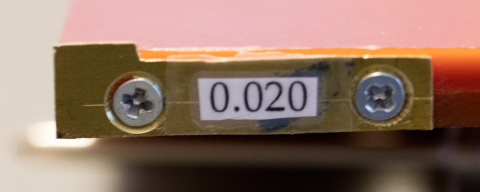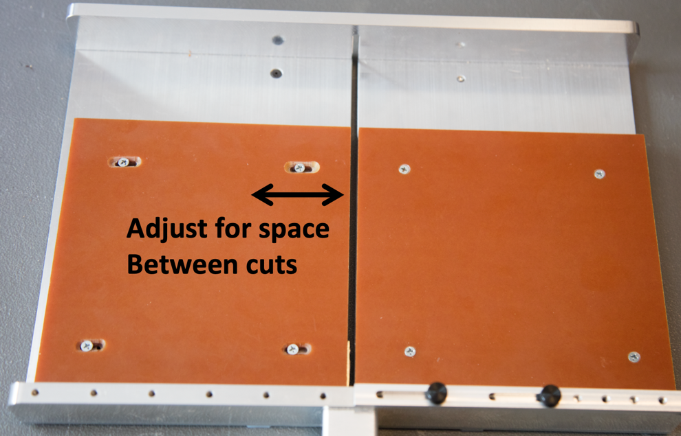 When the phenolic squares are bolted to the table, the left one can be slid from side to side to set the space between slots.