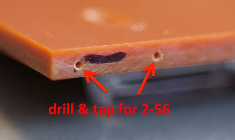 I drilled and tapped the lower right side of the left square for two 2-56 screws to hold a cutting guide.