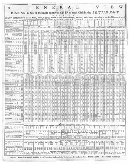 Approved Ship of Each Class in the British Navy with the exact dimensions of