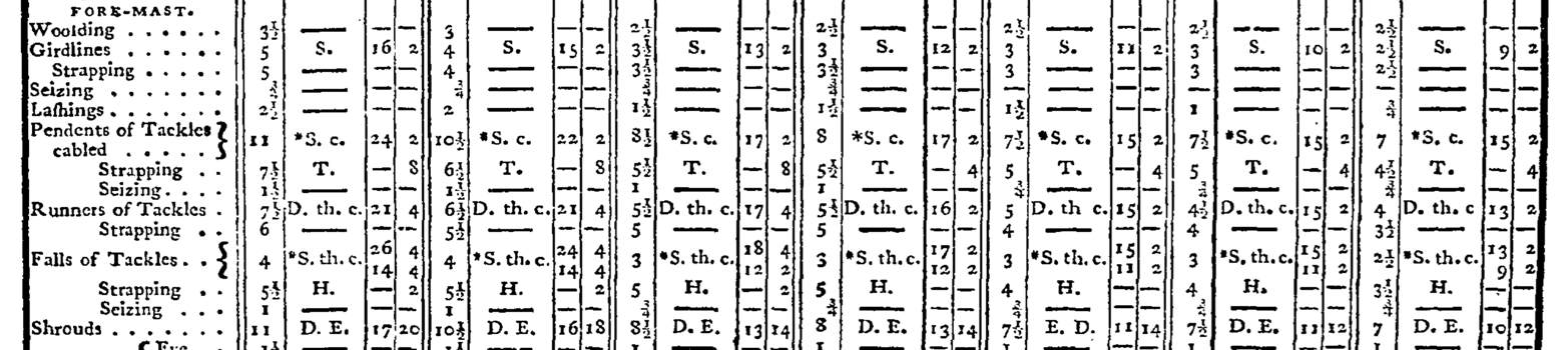 of the Dimensions and Quantities of Every Part of the Rigging of All Ships and